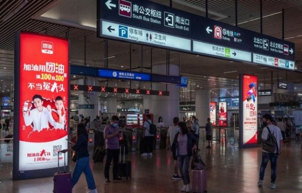 北京南站到達層到達大廳柱面燈箱廣告 · 4塊