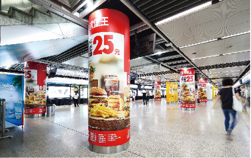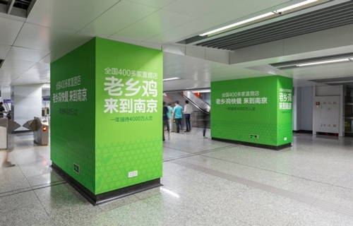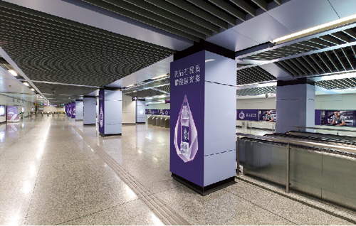 | 創意媒體-南京地鐵仙林中心站社區站廣告 線路:2號線 組合形式 :墻貼2面+柱貼19面 媒體費(元/4周):200,000 制作方式:寫真噴繪 制作費(元/次):35,631 |