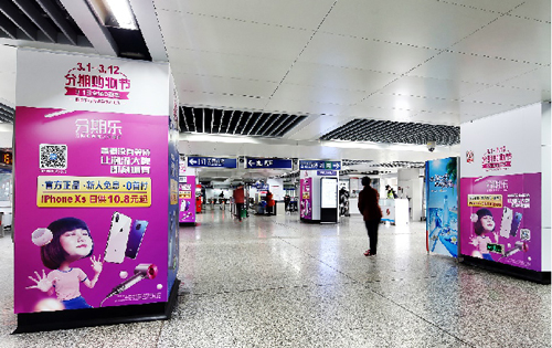 | 創意媒體-南京地鐵新街口站商業層南站廳社區站廣告 線路:1、2號線 組合形式?:包柱10根+超級燈箱1塊(11.93m*2.72m) 媒體費(元/4周):800,000 制作方式:UV寫真燈布+寫真噴繪 制作費(元/次):47,328 |