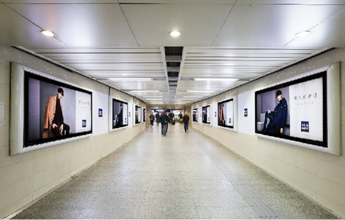 | 創意媒體-南京地鐵新街口站21號品牌通道廣告 線路:1、2號線 組合形式:7塊12封燈箱+63㎡頂天立地墻貼+2根包柱 媒體費(元/52周):450,000 制作方式:UV寫真燈片+寫真噴繪 制作費(元/次):31,458 |