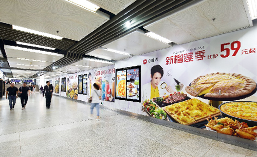 | 創意媒體-南京地鐵新街口站8號品牌通道廣告 線路:1、2號線 組合形式:73.34㎡ 墻貼 媒體費(元/52周):600,000 制作方式:UV寫真燈布 制作費(元/次):22,002 |