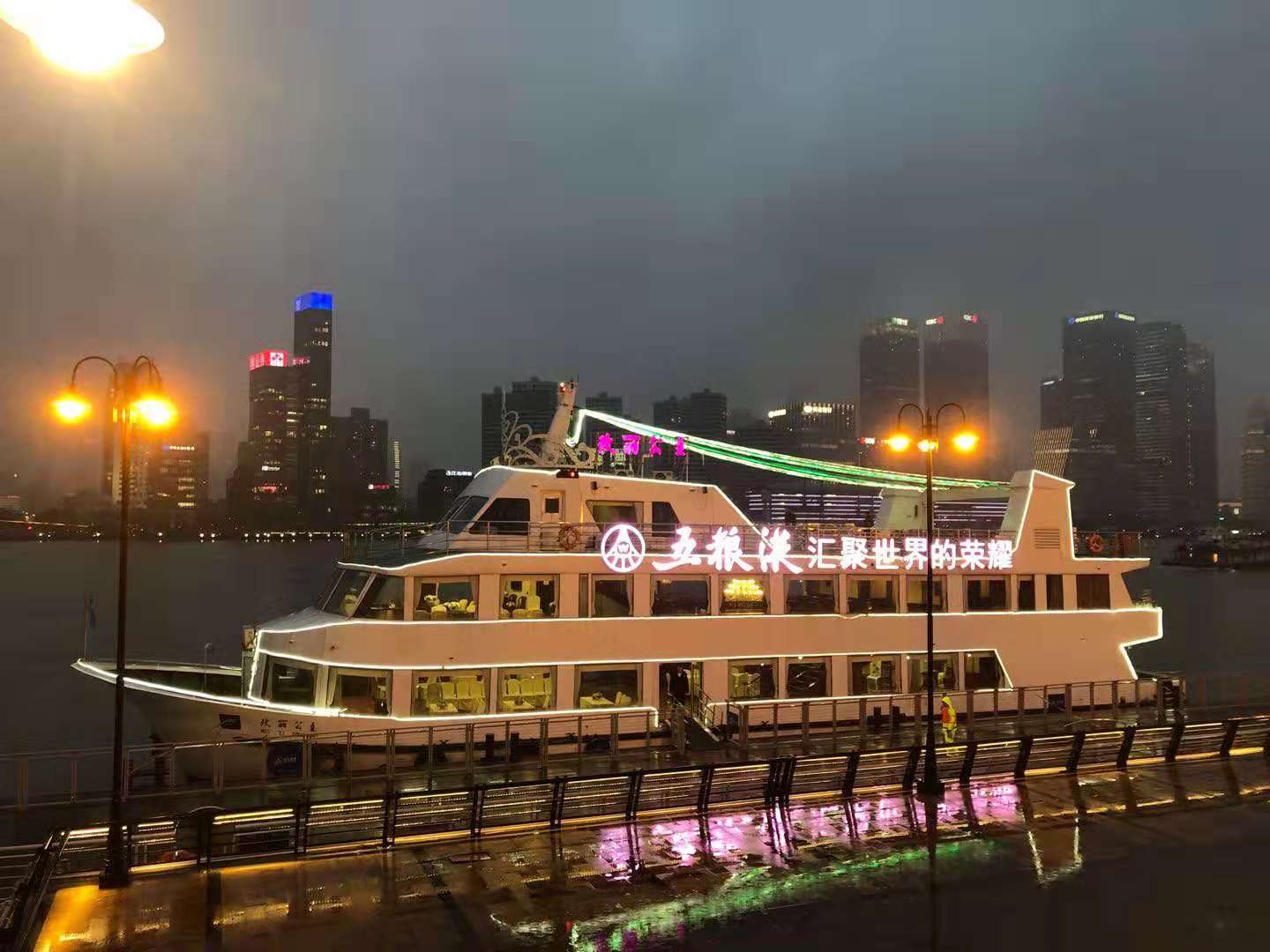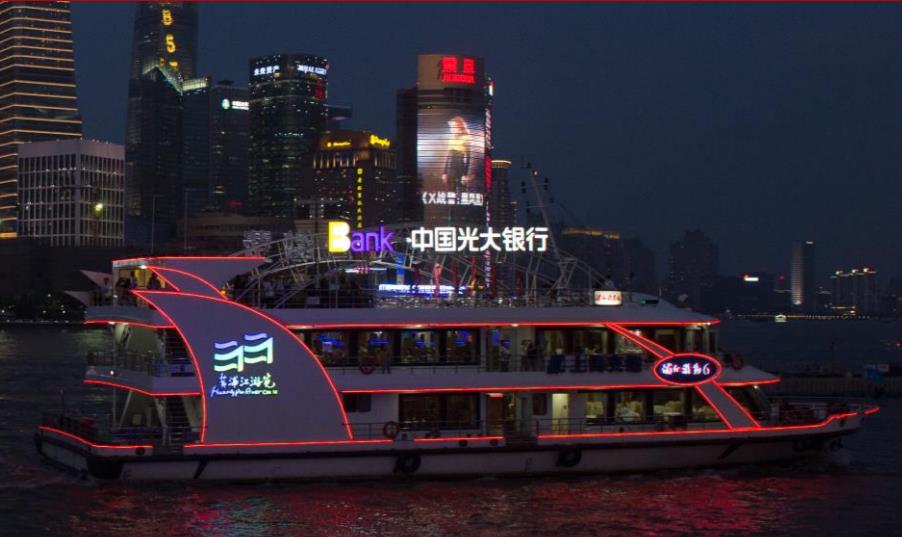 媒體介紹:“申城之光”輪總長(zhǎng)62.3米,總寬15.1米,最大載客400人,是一艘集高端商務(wù)接待、大型宴會(huì)和休閑觀光于一體的新一代黃浦江游船旗艦。