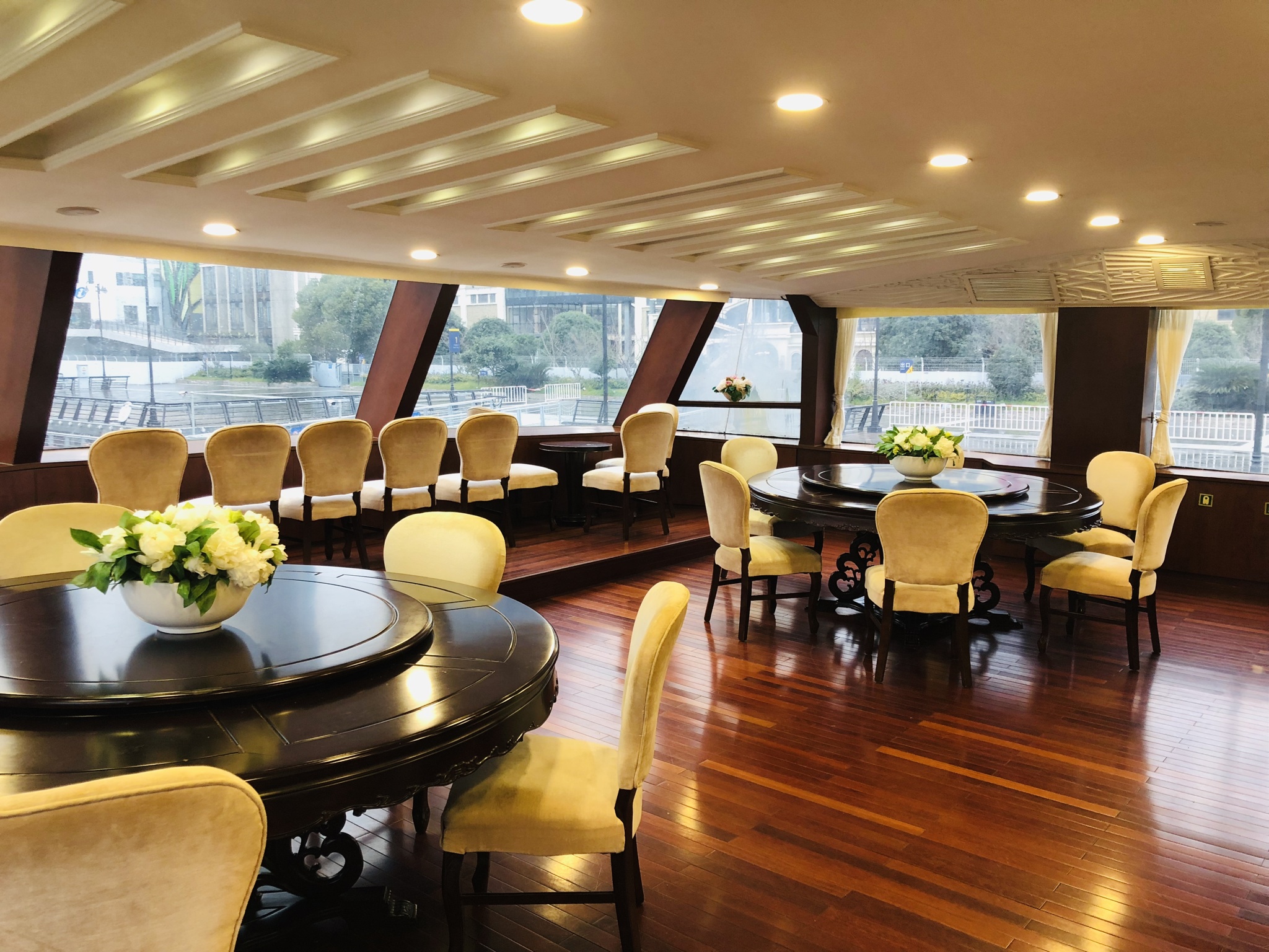 “康寧”號(hào)擁有多個(gè)豪華典雅的多功 能廳和江景包房,只要簡(jiǎn)單布置就可以舉辦一場(chǎng)別開生面的活動(dòng)。