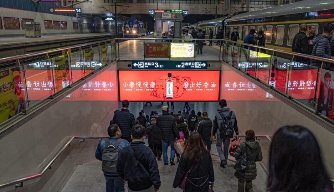 | 出發(fā)層候車大廳巨型墻面燈箱 · 4塊? 媒體尺寸(寬x高x面):109.2㎡ (19.5m×5.6m×1面) 投放形式:1塊/組 媒體價值: 1、此媒體為候車區(qū)南北對稱墻體上方媒體,中間無任何遮擋,百余平方米巨型畫面,視覺震撼性強,且候車室內無死角,彰顯品牌形象。 2.巨幅燈箱廣告畫面投放到達率高,受眾對于品牌畫面的視讀性好,對于品牌的記憶度高。 |