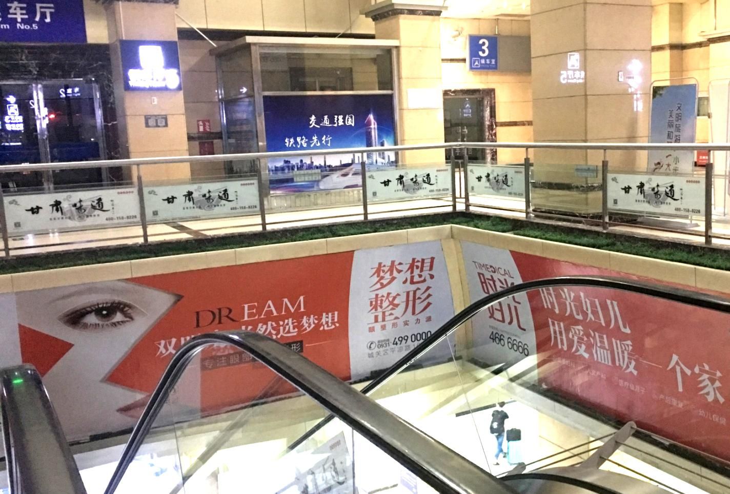 蘭州火車站二樓候車室中央玻璃圍欄廣告