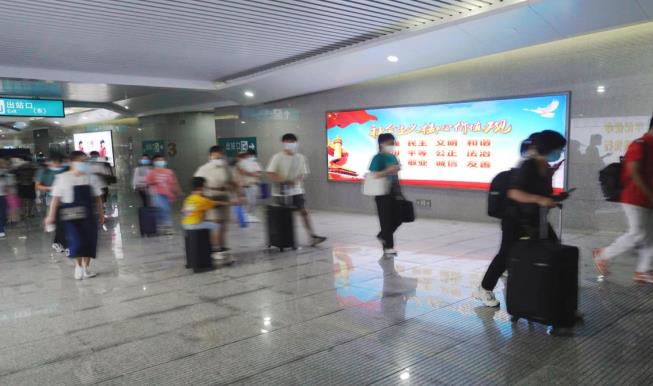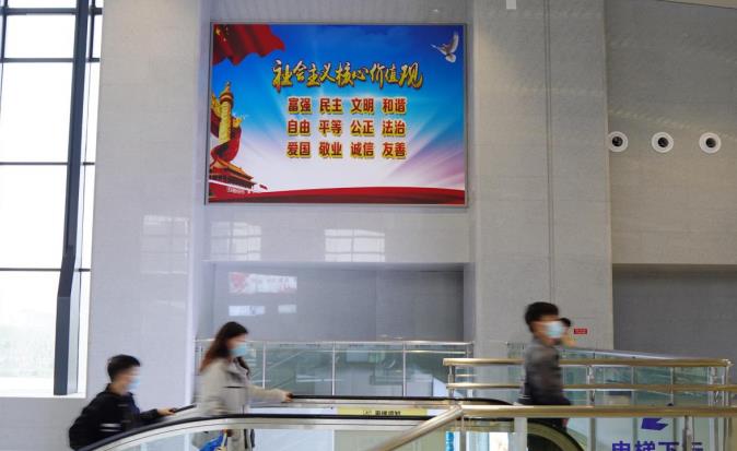 武漢東站西二樓候車廳墻面燈箱廣告