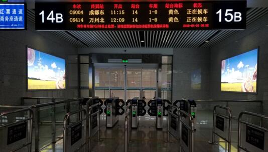 重慶西高鐵站候車廳LED信息屏兩側