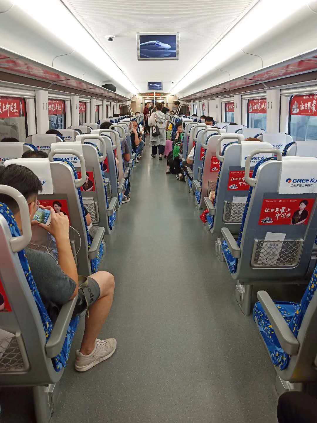 河南城際高鐵: ?車體采取CRH6A型動車組 每列車有1 -8號 車廂,座位:549個,采取公交化運行,所售出每天車票,顯示無座。每列承載最高達1479人次。