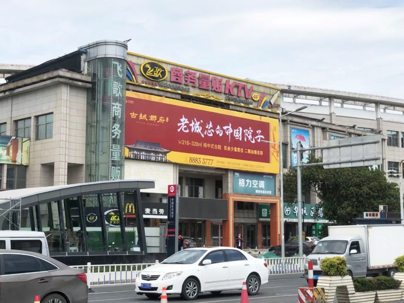 優勢分析:104國道是連接越城區與柯橋區的交通主干道,車流量繁忙,廣告牌位于古纖道大酒店屋頂,位置醒目,匯集最大客流目光。