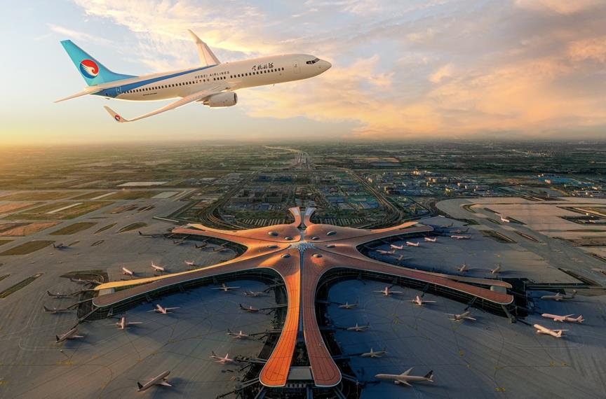 北京大興國(guó)際機(jī)場(chǎng)(Beijing Daxing International Airport,IATA:PKX,ICAO:ZBAD),位于中國(guó)北京市大興區(qū)榆垡鎮(zhèn)、禮賢鎮(zhèn)和河北省廊坊市廣陽區(qū)之間,北距天安門46千米、北距北京首都國(guó)際機(jī)場(chǎng)67千米、南距雄安新區(qū)55千米、西距北京南郊機(jī)場(chǎng)約640米(圍場(chǎng)距離),為4F級(jí)國(guó)際機(jī)場(chǎng)、世界級(jí)航空樞紐、國(guó)家發(fā)展新動(dòng)力源。