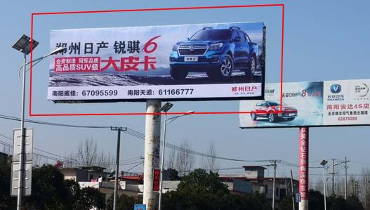媒體說明:該廣告位位置稀缺,南陽高速遮山站出入口,廣告牌輻射西部幾個縣城,鄭州,洛陽方向進(jìn)南陽入口,該處車流量大、受眾人群眾多。該區(qū)域地理位置開闊,大面廣告幅面直接帶來強烈的視覺沖擊力,優(yōu)越的地域優(yōu)勢大大提升廣告發(fā)布的品牌形象。
