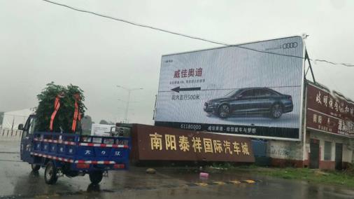 媒體說明 :該廣告位位于雪楓路迎賓大道北300米路東 泰祥汽車城大門口,三面翻大牌,可視面積大,可視距離遠(yuǎn),車流量:對面中商農(nóng)批發(fā)市場是南陽最大的食品流通批發(fā)市場,老國道,汽車城內(nèi)已入住開業(yè)10家4S店,下半年還有4家左右開業(yè),35萬/天;人流量:30萬/天,可視距離遠(yuǎn),視覺沖擊力強,廣告效果絕佳。