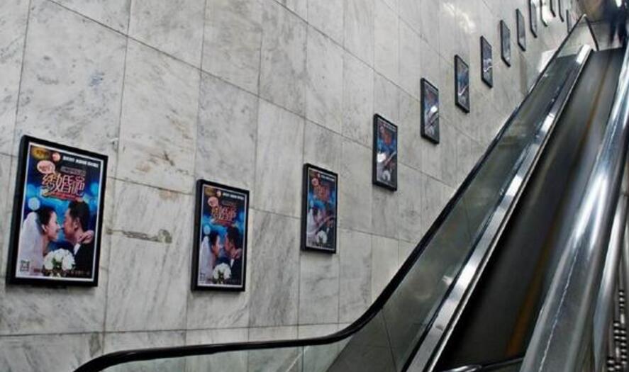 一般來說,每個地鐵站都有四個出入口。而每個出入口的扶梯側面都有地鐵扶梯廣告的展位。一排廣告位大約是由10-20塊框架組成。點位眾多,我們有足夠的空間來展現我們的廣告。