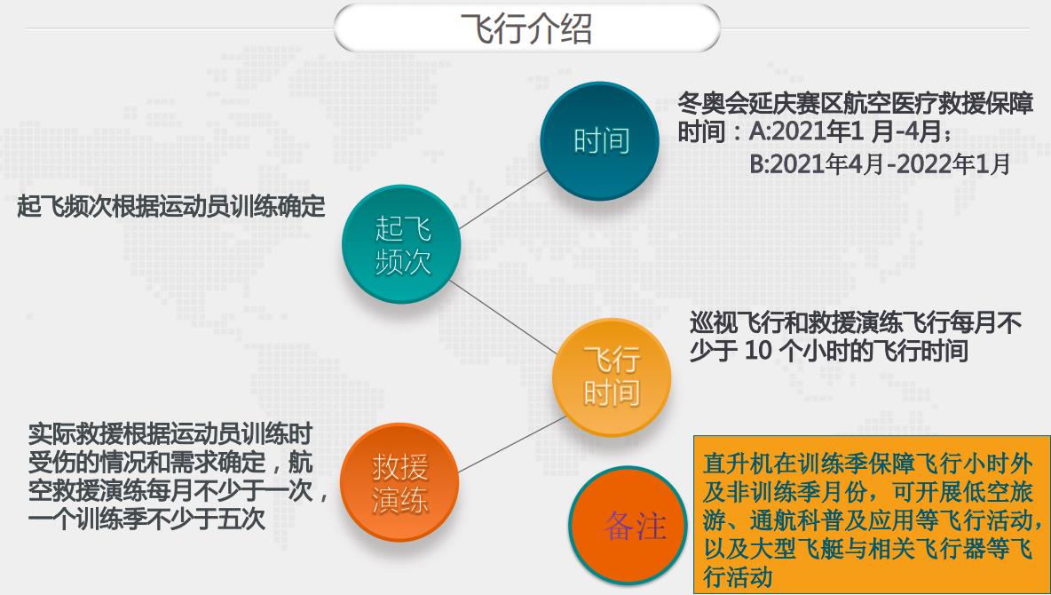 對中國國家隊(及各國代表隊)在延慶賽區(以及張家口賽區)上道訓練進行巡視的貝爾ELL)407GX直升機已于2021年1月10日正式開始全天候備勤。