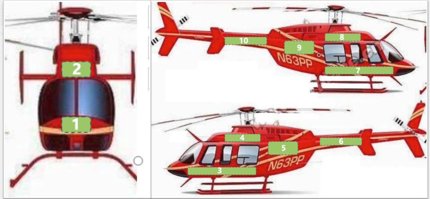 圖中編號1-10為機身廣告位置,贊助企業可根據贊助方案選擇廣告位置。