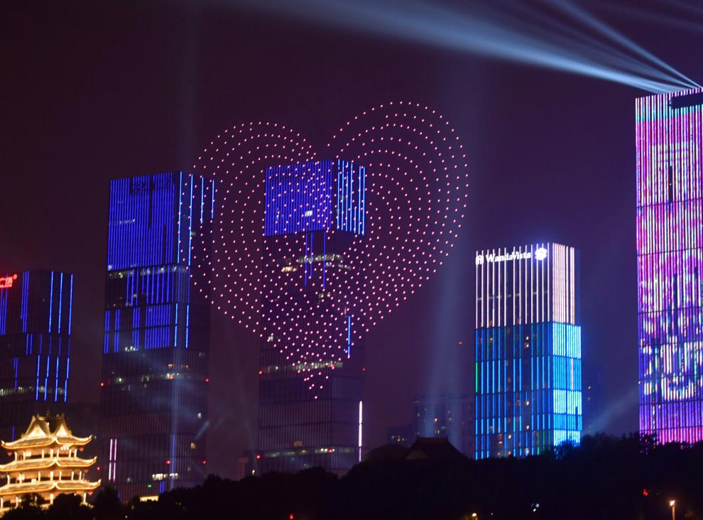 長沙無人機表演,長沙無人機表演秀,長沙無人機燈光秀表演,萬事成傳媒無人機表演公司