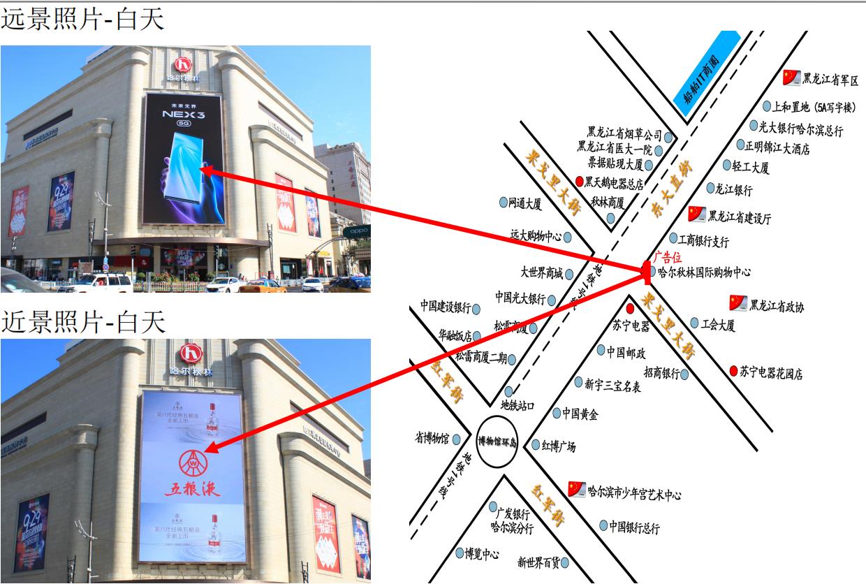 •此路段LED顯示屏依附于哈爾秋林國際購物廣場,身具高端大氣之血統,氣勢上藝壓群芳、獨占鰲頭,著重突出品牌獨一無二的國際范兒。