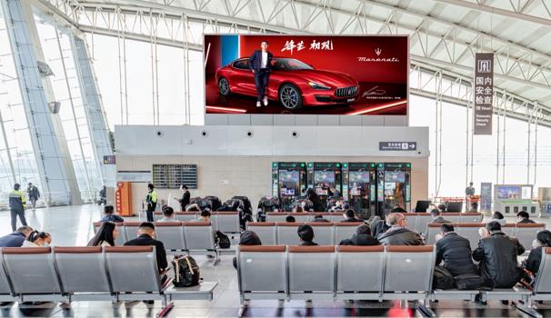 西安咸陽機(jī)場T2航站樓出發(fā)值機(jī)大廳led廣告,萬事成傳媒