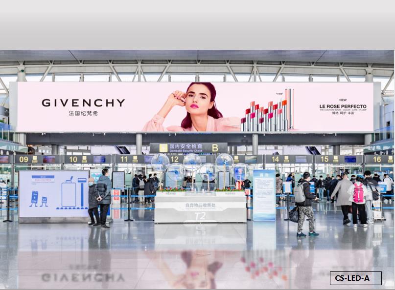 長沙黃花機(jī)場廣告 長沙機(jī)場T1&T2航站樓安檢正上方led廣告