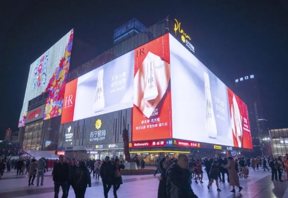 護膚品牌赫蓮娜曾在位于重慶觀音橋的“3788亞洲之光”超高清LED巨幕上上刊過一則戶外廣告,面積高達3788㎡的戶外大屏為消費者帶來了強烈的視覺震撼效果,再加上深受女性消費者認可的品牌代言人王菲,全方位幫助展示品牌特性。占有絕對優勢的地理位置和屏幕面積,再加上高清的廣告畫面,與赫蓮娜高端的品牌定位深度契合。這不僅給赫蓮娜帶來了超高人氣的品牌曝光,也為東方初曉傳媒的“3788亞洲之光”大屏帶來了不少好評和贊譽。