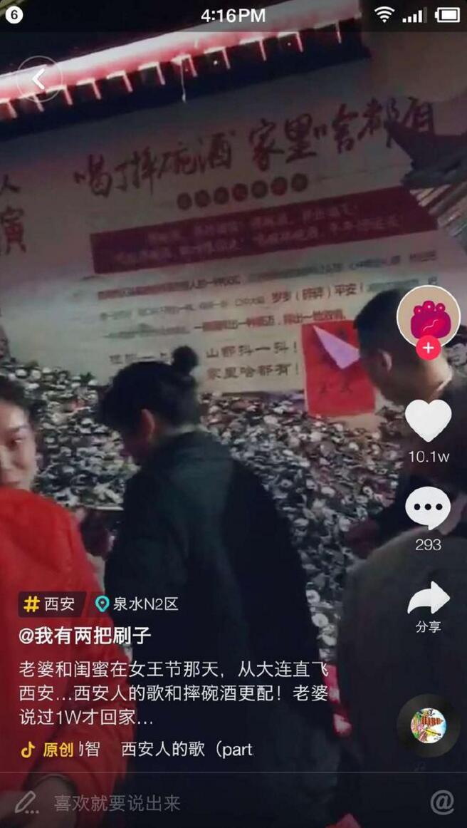 因?yàn)樵诙兑羯弦馔獗鸬倪@段摔碗短視頻,西安的旅游發(fā)展委員會(huì)還專門與抖音達(dá)成合作。數(shù)據(jù)顯示,今年春節(jié)假期以及清明假期中,西安接待的游客量分別同比增長(zhǎng)66.56%,以及38.76%。截至三月,抖音上關(guān)于西安的視頻量超過61萬(wàn)條,播放總量超過36億次。